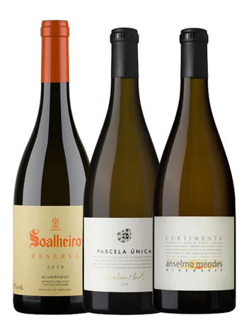 Explore nossa seleção especial de três garrafas de vinho Alvarinho. Aproveite a oferta com desconto especial!